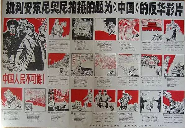 比如,在红旗渠附近的北小庄,房子都是石头垒的,安东尼奥尼打算在那里拍,村里觉得不好看,派人连夜用石灰把墙全部涂成白的了。第二天安东尼奥尼一看,说:“我不能拍了,我们不想改变什么,我们想成为1972年中国的见证人。” 虽是请来的客人,当年安东尼奥尼的行动仍受限。1972年5月13日,安东尼奥尼率领的摄制组到达中国,受到一个中国小组的欢迎,这个小组在整个拍摄期间都跟随左右服务,小组成员包括政治负责人、电影专家,还有其他三个人。 北京、上海、南京、苏州、河南林县(今林州市),成为被同意拍摄的地方。 安东尼奥尼,也放弃原先长达近半年的拍摄计划,压缩在短短22天之内匆匆赶拍,最后制作成一部时长近220分钟的大型纪录片《中国》。 感谢安大师,为我们留下了那个时代比较真实的镜头。斯人已去,作品永存!