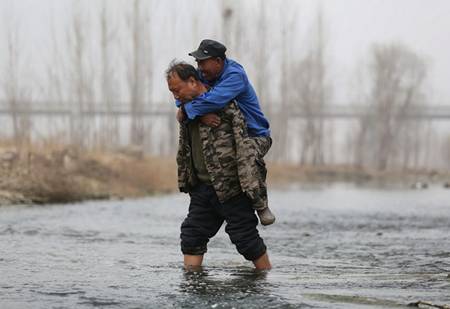 在石家莊,有這樣兩位老人,一個雙目失明,一個沒有雙臂,兩人互相扶持,做了一件常人看來不可能完成的事——14年間植樹上萬棵,硬是把昔日荒涼的荒灘變成了一片茂密森林。 對相識幾十年的老友,一個叫賈文其,一個叫賈海霞,兩人同齡,今年54歲。 賈文其3歲時意外觸電,失去了雙臂;賈海霞的左眼是先天性白內障,38歲時右眼因打工不慎受傷,從此雙目失明。 失去了生計,2001年的某天夜裡,賈海霞悵然地問賈文其:“咱能幹點啥?”“咱們植樹吧。”賈文其答。 說乾就乾,兩人決定承包村裡沒人要的50多畝荒灘來植樹,村委會知道後,一分錢沒要就和他們簽了合同。 於是他們開始了起早貪黑的植樹生涯,這一乾,就是14年。 每次出門,看不見的賈海霞都要拉著賈文其空空如也的衣袖,賈文其則在前面為賈海霞引路。 他們買不起樹苗,只能把大樹上的小樹枝砍下來,代替樹苗。沒有手臂的賈文其上不了樹,只好用肩膀頂著賈海霞往上爬。 等賈海霞爬到樹上,賈文其告訴他樹枝的確切位置,賈海霞再用斧頭砍下樹枝。看過老哥倆植樹的人都開玩笑地說他們像是演雜技的。 他們得將砍下的樹枝拿到河對岸的荒灘栽種。抵達荒灘要跨過一條寬約30米的小河,過河時,賈海霞幫賈文其卷起褲腿。 將樹枝送到河灘之後,賈文其再返回來背賈海霞過河。 夏天,水流湍急,圓石遍布,稍有不慎便會跌倒;而到了冬天,河水又冰冷刺骨。但這是他們過河的唯一方式。 的時候,哥倆配合十分默契。賈海霞一伸手,賈文其就知道是要鐮刀。他便用腳精准地夾起地上的鐮刀送到賈海霞手裡。 賈海霞看不見,就用手摸索著不讓小樹苗倒掉;賈文其沒有手,就用腳趾頭夾住水桶,給樹苗澆水。 為了節省時間,哥倆中午就在河灘上休息吃飯。賈海霞悉心地喂賈文其喝水、吃飯。 第一年,哥倆栽下800棵樹,只活了2棵;第二年,他們改進方法,專選有水的地方栽種,成活量提升到了100棵。 老哥倆一個有眼,一個有手,這就足夠了,因為,你就是我的手,我就是你的眼。 他們說:“我們倆在一起乾活的時候,根本沒有感覺到我們是殘疾人,我們就是一個團隊。” 就這樣,這個特殊的“團隊”用了14年的時間,歷盡千辛萬苦,把50多畝荒灘變成了樹木蔥鬱、鳥兒嬉戲的綠林。 如今,最大的楊樹直徑已長到了20釐米,終於到了獲得收益的時候。如果把樹全部賣掉的話,是一筆很可觀的收入,但看著那些樹像自己的孩子般一點點成長,給荒地帶來生機,他們卻捨不得了。 老哥倆又做了一個常人意想不到的決定——不砍一棵樹,他們要把這些樹作為禮物留給子孫後代,還大伙一個碧水藍天。 2015年,兩人的故事吸引了美國CNN的目光,美國人以他們為主人公,拍攝了一部短片,短短兩分多鐘,感動了無數人。 目前,這則視頻已在Facebook、Youtube等海外網站累計播放破百萬,許多外國網友紛紛點贊並評論: @Timothy Decubellis:美國需要多一點像你們這樣的人! @Aarthy Bright:事實上我才是殘疾人......我有健全的身體,但是甚至不能管理好自己屋後的花園,我至少應該種棵樹...... @Rossana Pascua:向二老敬禮!即使身有殘疾,你們仍然是這個世界上真正的英雄。我祝福二老健康長壽!!! @Ok Channel:他們每種下一顆樹,那些有著明亮的眼睛和健全的身體的人們同時燒掉了另外一棵。 @Joan Anello:這樣好的朋友去哪裡找?他們的相遇一定是被安排好的。