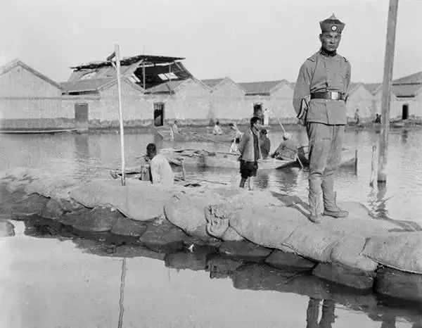 天津,居住在窩棚裡的難民婦女。
