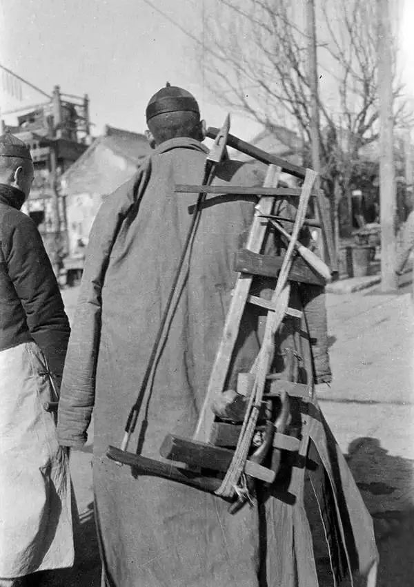 北京,背著工具外出做活的木匠。