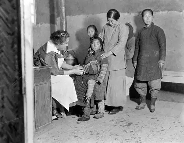 天津,洋大夫給中國兒童看病。