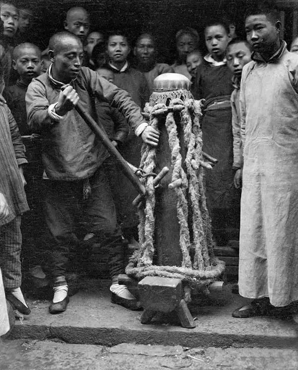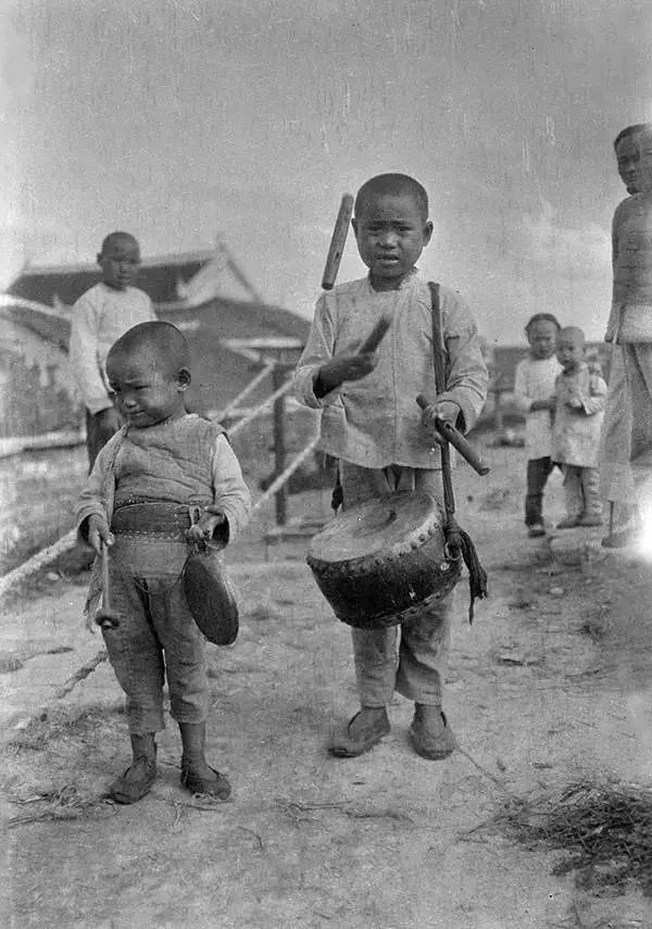 1919年,杭州,現場表演做鼓。