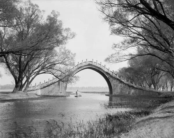 北京頤和園昆明湖長堤上的玉帶橋。