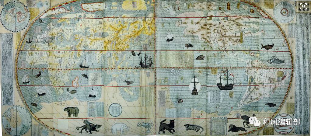 地理课上,也有教会的贡献。利玛窦制作的世界地图《坤舆万国全图》是中国历史上第一个世界地图,在中国先后被十二次刻印。北极、南极、地中海、日本海等词汇皆出于此地图。