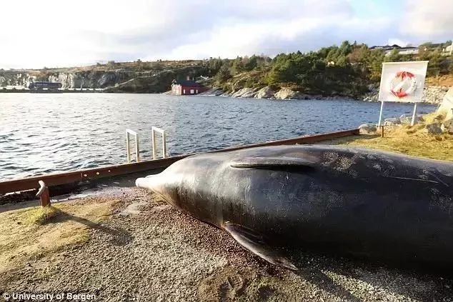 2月初,人們在挪威海灘發現一頭死去的鯨魚。