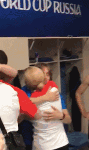 不在意地上那堆亂糟糟的球衣球鞋,也不顧球員滿身汗臭,科琳達大方的為這些為國爭光的男兒們送上擁抱。 可不是官方的那種擁抱。晃動的身體,緊貼的臉頰,隔著屏幕都能感受到科琳達傳遞出來的溫暖和力量。