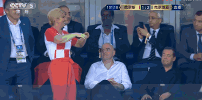 兩位領導人見面時,人們發現,與西裝筆挺的梅德韋傑夫不同,科琳達竟然把西裝外套和克羅地亞隊服混搭在了一起。 這樣做既能體現出她對國家隊的支持和熱愛,還不會失掉作為國家領導人的禮節。不得不說科琳達的情商真的太高了! 克羅地亞進第一個球的時候,科琳達同梅德韋傑夫握了握手,盡顯領導人的禮貌和大氣。 然而當克羅地亞在加時賽第二次洞穿俄羅斯的大門時,心隨球隊而動的科琳達再也克制不住自己的激動,直接從椅子上跳了起來,為球隊振臂高呼。 這樣一位極具少女心的女神總統,不但讓現場攝像為之傾倒,就連後排的官員都不禁掏出手機,記錄下這可愛的一幕。