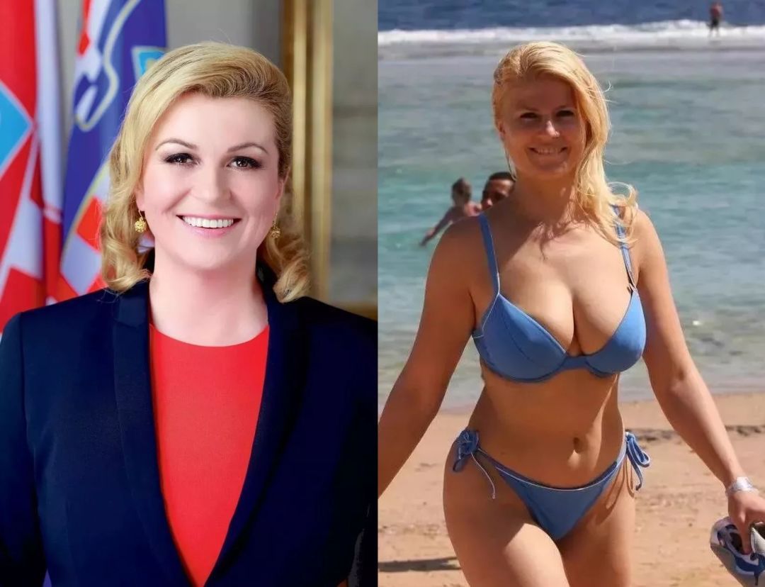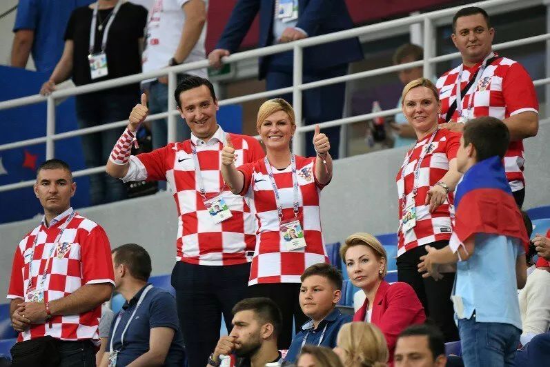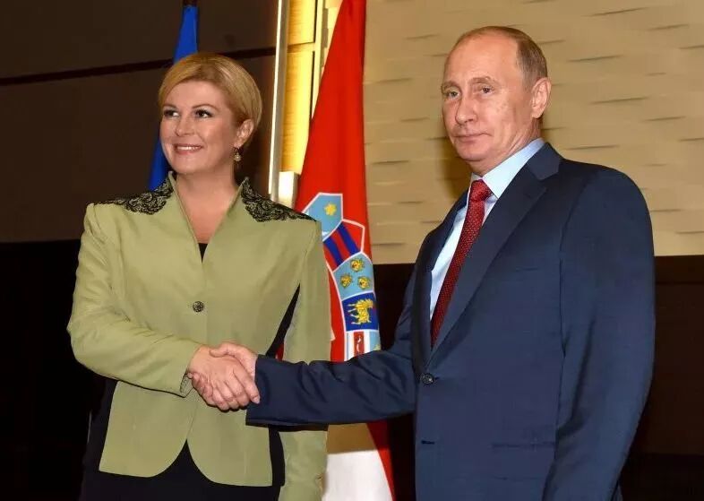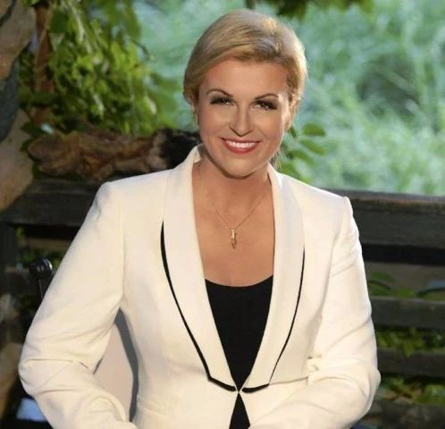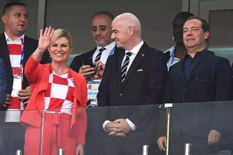 這個燦若驕陽 優雅明艷 大氣從容的女人 可不是普通的球迷 她是克羅地亞第一位女總統 科琳達·格拉巴爾-基塔羅維奇