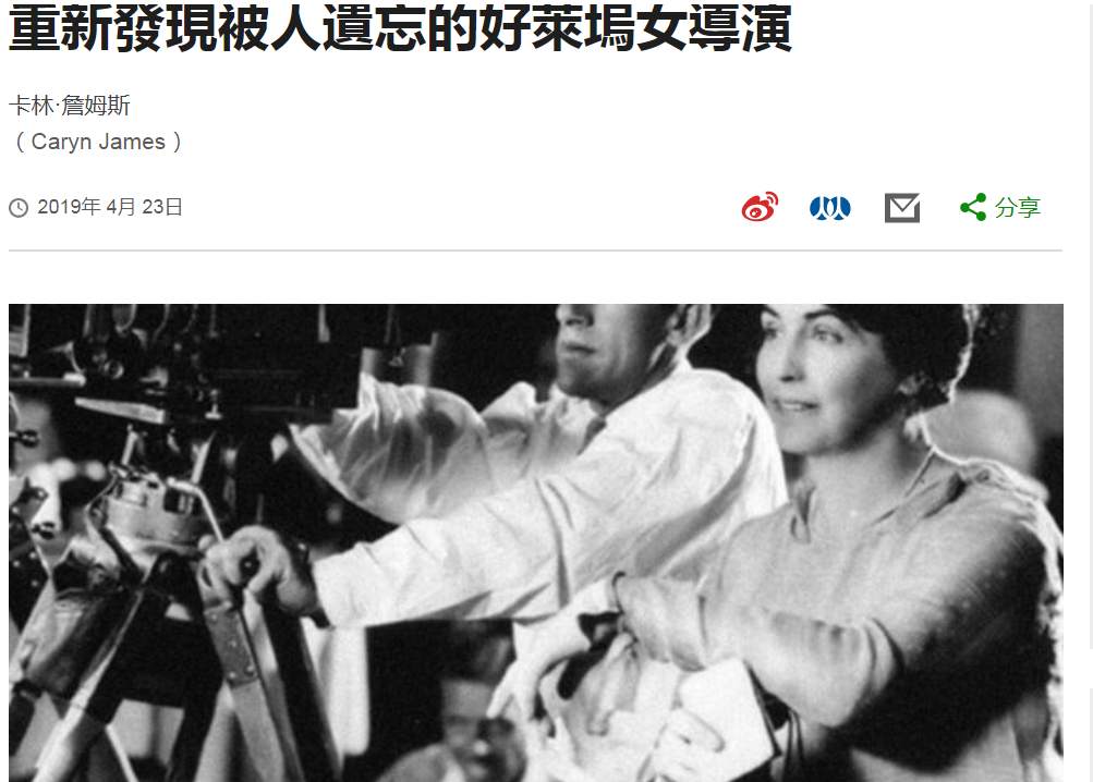 比如在上世紀初的電影默片時代美國出了一位開拓性的傑出女導演Lois Weber。BBC稱她是人類電影起步之初影響巨大的兩位女電影人之一。儘管她曾經是美國薪酬最高的電影導演,並是第一位使用分鏡頭和二次曝光等電影技術的先鋒導演,拍攝了很多叫好又叫座的優秀電影,包括第一部女性製作的大型動作片。但在男性掌控好萊塢後,她竟然完全被世人遺忘。直到一個世紀後的今天才迎來這位女導演的再發現,她的事蹟近來被寫成書出版,她的電影被修復後也重新出版發行,還收進了Netflix的發行清單中。