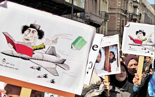 三月十七日,聯合國通過決議,在利比亞開闢禁飛區,當時中國並未使用否決權,而是投了棄權票。但自十九日起法英美開始空襲利比亞軍事目標,幾天來給予卡扎菲重創之後,中國卻突然改變態度,高調遣責聯軍的「軍事行動」,要求停止攻擊所謂的「平民」等等。對此,官方喉舌中央電視台也跟著前後自相矛盾,大量報導種種虛假不實的戰況新聞,引發中國網民的憤怒與不滿。