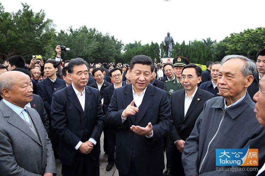 習近平去年12月中旬南下重走鄧小平南巡之路,圖為習近平在深圳蓮花山公園與當年參與深圳特區建設的老人會晤交談。