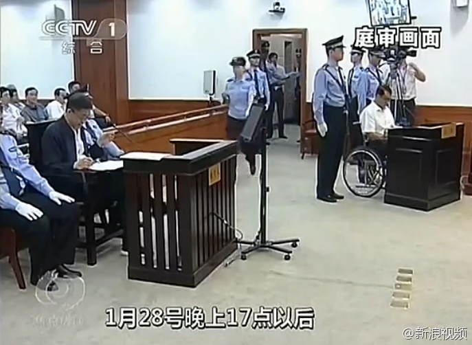●薄熙來心腹幹將王立軍出庭作證。為何坐輪椅?被傳媒追蹤。