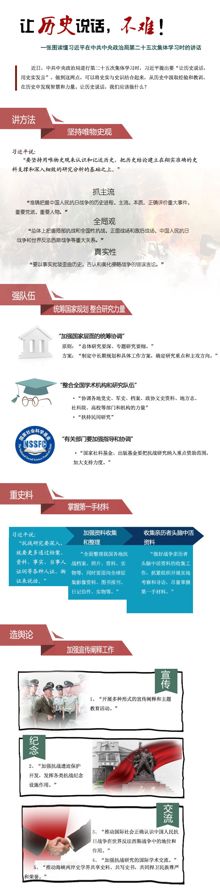 黨媒新華網上週六晚發了一幅圖(見文章下)。圖的主標題為「讓歷史說話,不難」,副標題是「一張圖讀懂習近平在中共中央政治局第二十五次集體學習時的講話」。 然後,新華網在圖前寫下一段按語:近日,中共中央政治局進行第二十五次集體學習時,習近平提出要深入開展中國人民抗日戰爭研究,「讓歷史說話,用史實發言」。做到這兩點,可以將史實和史識結合起來,從歷史中汲取經驗和教訓,在歷史中發現智慧和力量,讓歷史說話,我們應該做什麼? 呵呵,讓歷史說話,你們——應該做什麼? 依我看,在時下舉國矚目中國抗戰史的氛圍中,你們該做的第一件事兒,就是儘快為網路盛傳「毛澤東與日本政要談話」之不實言論——闢謠,還歷史本來面目! 毛澤東多次感謝日本皇軍侵略中國 這些年來,各大網路媒體流傳著不少毛澤東在「新中國」成立後,屢次接見日本訪華團時說出「感謝日本皇軍侵略」的奇談怪論,本文僅取其三例以分析並探究其真偽。需要說明的是,在為本文選取毛澤東講話資料時,本博還是十分注重資料出處的。對來路不清的隻言片語,堅決摒棄不用! 本篇引用毛澤東的講話素材,均來自《共識網》(一家比較嚴肅的「政論思想類」網站)。當然,《共識網》對資料出處也有明確說明:「文獻均引自中華人民共和國外交部和中共中央文獻研究室合作編輯的《毛澤東外交文選》,中央文獻出版社,1994年」 第一例:1961年1月24日,毛澤東在會見日本社會黨議員黑田壽男等人時說:「日本皇軍過去佔領了大半個中國,因此中國人民接受了教育。如果沒有日本的侵略,我們現在還在山裡,就不能到北京看京劇了。正是因為日本皇軍佔領了大半個中國,讓我們建立了許多抗日根據地,為以後的解放戰爭創造了勝利的條件。日本壟斷資本和軍閥給我們做了件好事,如果需要感謝的話,我倒想感謝日本皇軍侵略中國。」 第二例:1964年7月10日,毛澤東在會見日本社會黨委員長佐佐木更三偕委員黑田壽男時說:「我曾經跟日本朋友談過。他們說,很對不起,日本皇軍侵略了中國。我說:不!沒有你們皇軍侵略大半個中國,中國人民就不能團結起來對付蔣介石,中國共產黨就奪取不了政權。所以,日本皇軍是我們中國共產黨人的好教員,也可以說是大恩人,大救星。」 沒有你們皇軍,我們不可能奪取政權 佐佐木:「今天聽了毛主席非常寬宏大量的說話。過去,日本軍國主義侵略中國,給你們帶來了很大的損害,我們大家感到很抱歉。」毛澤東:「沒有什麼抱歉。日本軍國主義給中國帶來了很大的利益,使中國人民奪取了政權。沒有你們的皇軍,我們不可能奪取政權。這一點,我和你們有不同的意見,我們兩個人有矛盾。」(眾笑,會場活躍)。——摘自《毛澤東思想萬歲》第533至534頁。) 第三例:1972年中日建交後,日本首相田中角榮來華訪問時向毛澤東道歉:「啊,對不起啊,我們發動了侵略戰爭,使中國受到很大的傷害。」毛澤東:「不要對不起啊,你們有功啊,為啥有功呢?因為你們要不是發動侵華戰爭的話,我們共產黨怎麼能夠強大?我們怎麼能夠奪權哪?怎麼能夠把蔣介石打敗呀?」他感謝田中角榮。「我們如何感謝你們?我們不要你們戰爭賠償!」——翻譯摘自《田中角榮傳》日語原版 從1961年到1972年中日建交的整整十一年間,毛澤東在會見日本政要的多次講話中,有一個主題是貫穿始終的,這就是:「新中國」成立後身為執政組織的中共政權,對當年「日本皇軍」侵略,一直是心存「感謝」之情的。因為如果日本皇軍「要不是發動侵華戰爭」,沒有「皇軍侵略大半個中國」,「共產黨怎麼能夠強大?」「怎麼能夠奪權哪?」「怎麼能夠把蔣介石打敗呀?」 所以,對日本皇軍而言,應該「沒有什麼抱歉。日本軍國主義給中國帶來了很大的利益,使中國人民奪取了政權。所以,日本皇軍是我們中國共產黨人的好教員,也可以說是大恩人,大救星。」 以上言論,如果不標注在偉大領袖毛澤東名下,每個中國人一定會認為這就是典型的漢奸言論!中國當下的左派群體,也一定會群情激奮,義憤填膺。他們還一定會大聲疾呼,對說出「感謝日本皇軍」的漢奸賣國賊,應全黨共討之、全軍共誅之、全國共滅之! 說實在的,我也認為那些「毛澤東講話」,就是純粹的無恥的可憎的可惡的——漢奸言論! 但我的「三個自信」思維告訴我:以上那些話,絕不可能為毛澤東所言。在偉大領袖毛主席的金口玉牙裡,是絕不可能吐出那些——混帳話的! 唔,只有一種可能…… 怎樣落實「讓歷史說話,用史實發言」 《共識網》不是說明網站刊出的「毛澤東與日本政要談話」,「均引自中華人民共和國外交部和中共中央文獻研究室合作編輯的《毛澤東外交文選》」嗎?而且還是「中央文獻出版社」出版的。所以我相信,一定是「中華人民共和國外交部」、「中共中央文獻研究室」還有「中央文獻出版社」這三個機構,出了問題!最大的可能,就是此三機構在「新中國」成立之後的六十多年裡,一直潛伏著日本軍國主義的文化間諜!是日本特務捏造了根本就不存在的毛澤東講話,並將此塞進《中央文獻出版社》出版的《毛澤東外交文選》之中! 我想執政組織此後的應對措施應該有三步: 第一步:國家安全部至少派出三個以上的副部長(正部長也行),進駐「中華人民共和國外交部、中共中央文獻研究室、中央文獻出版社」三機構(就像上個月國家公安部為查