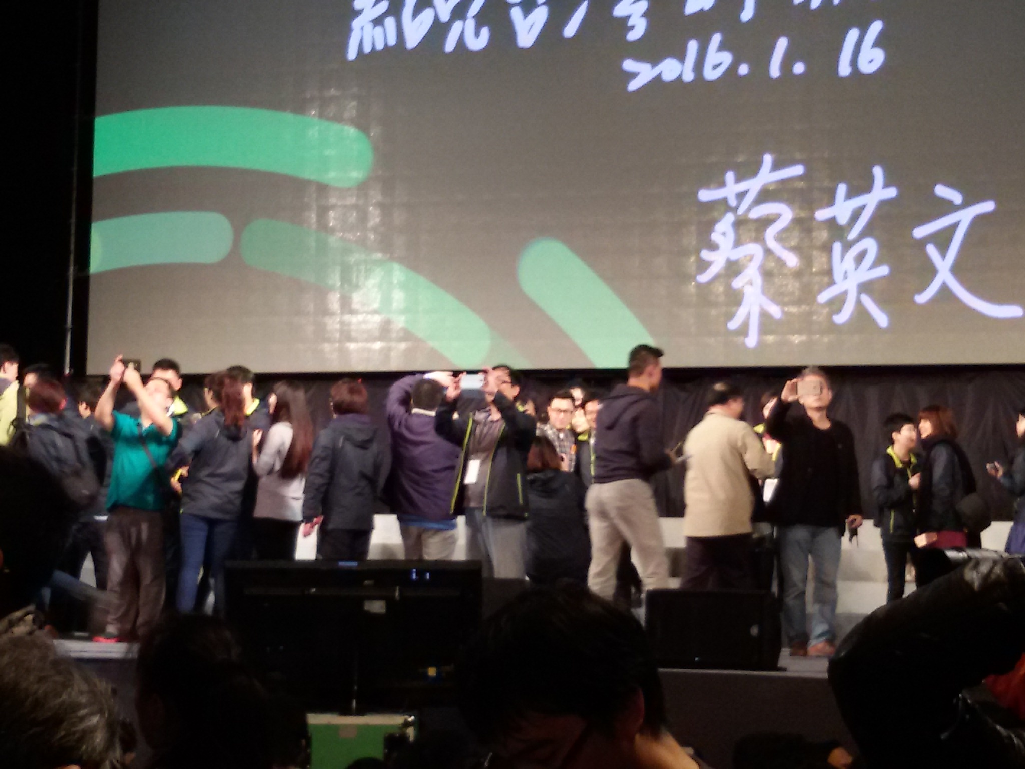 一如選前預料,民進黨蔡英文確定勝選,成為台灣第一位女總統。她在召開完國際記者會後,也隨即發表勝選感言。在勝選晚會上,民進黨所有大老一字排開站在蔡英文後面,蔡英文也呼籲所有民眾擦乾淚水,一同迎接台灣新時代。