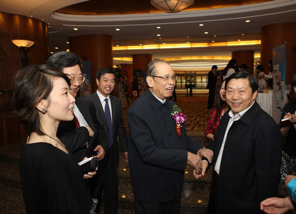 ●今年五月文匯報北京分社成立,周南(右二)到賀,右為社長王樹成。(本刊資料)