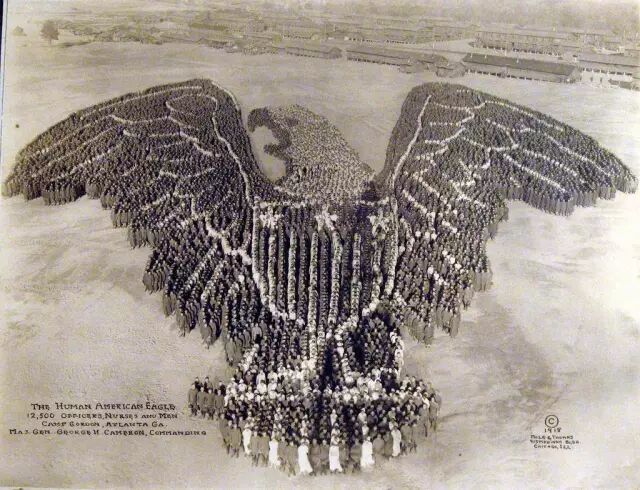 ▲ 1918 年,亚特兰大葛登营,由 12500 名士兵组成的人鹰。