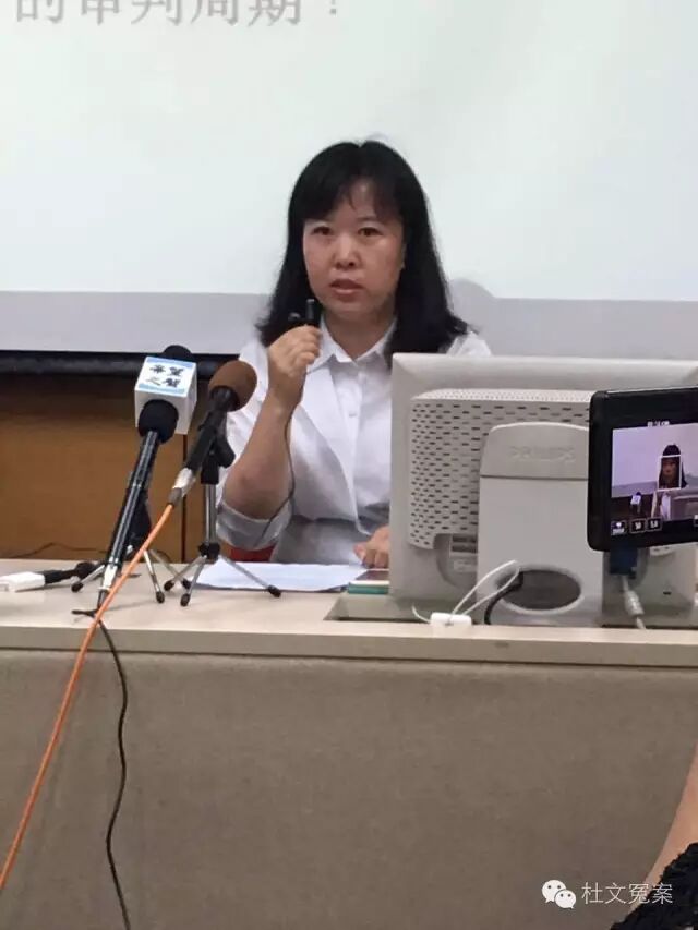 【公告】應香港開放出版社邀請,我於2016年7月23日在香港參加了著名作家趙秋原女士採寫的長篇紀實文學《杜文案件》新書發佈會。發佈會由香港著名文化人寒山碧先生和程翔先生主持,政治評論人、法學博士桑普先生現場點評,香港新聞記者、出版人士參加。日本NHK電視台、美國之音等外媒現場採訪。我有幸見證了一次一國兩制下香港出版自由。我在戰戰兢兢中我做了如下發言,願杜文冤案昭雪平反…… 杜文案件的受害人杜文的太太王偉華於記者會上發言。敬的朋友們,大家好。 很榮幸能夠參加今天的記者會。坦率講,杜文案的判決結果令我們全家愕然!參加今天的發佈會,我做了最壞的打算,我的壓力很大,杜文還被他們關著,孩子、家人還在等著我照顧。但是不論多危險,我都得站出來!因為我是妻子、母親! 首先,我代表我們全家人,代表杜文,向《杜文案件》作者趙秋原女士和開放出版社及各位到場的記者朋友致以深深的感激。更要特別感謝出版社葉子女士,您為書籍的出版和本次記者會付出了太多的努力。在這冰封的歲月,您們的無私幫助讓我們這個不幸的家感受到了不盡的溫暖。 對於本書,有朋友告訴我“這是中國建國以來全程記錄司法個案的第一部紀實報告文學作品”。而我個人的感受是:這本書寫的很殘酷,她與我此前看到的所有書都不一樣,因為太真實了!可能是由於本書完全真名實事,又由於作者趙女士不斷受到匿名的警告和公開的私下的干擾,她似乎一直都在防止當被告,在近一年的採訪寫作時間裡,我看到她一方面以極大的魄力和勇氣力求揭發真相,另一方面對每一個字都是慎之又慎,表面上嬉笑怒罵,實際上如履薄冰。 我想告訴朋友們,六年兩個月的徵戰使我明白,在中國要想打一場爭取公平的官司太難了!要想同官員平等對話太難了!我總感覺精疲力盡,時常感覺自己真的撐不下去了。我想說,哈利路亞,如果沒有上帝的眷顧,我們家是絕對不會走到今天的。 朋友們,本案當代中國第一冤案,作為全世界首例省級政府公款行賄案,背後涉及的人和事十分複雜,不僅涉及到全國人大、中紀委、最高法院、最高檢察院、公安部、內蒙政府、公安廳、檢察院、法院還涉及呼市和賽罕區的公檢法三個系統。有很多是我不敢說甚至不敢想的,作者在本書中都寫到了,寫的很清楚,很深刻,很客觀。我只是一名小學語文教師,我不懂太多的人權法治,結合書中內容,我這裡簡單談幾個事實吧: 1.無限期超期羈押。杜文於2010年5月6日被捕,至終審宣判日2016年7月4日為止,整整六年兩個月的審判週期。中國刑事訴訟法對於羈押期限有嚴格規定,在本案的審理過程中,若干次超期羈押。而按照中國的法律規定,這種超期羈押無異於非法拘禁。 2.非法逮捕。杜文在2012年1月5日(一審庭審完畢後)被法院取保候審,在簽署完釋放證明後,五分鐘後又被呼和浩特市賽罕區檢察院以同樣案由再次逮捕。按照法律規定逮捕依法應由市級檢察院批准,但四年多來,終審宣判了呼市的檢察院都沒有批准過。 3.合法財產被非法肆意剝奪。中國法律規定不得查封扣押沒收與案件無關財產、不得在終審完成前沒收財產。本案中,我們全家集資購買的房產經法院判決與案件無關的情況下,檢察院通過違背法律規定的紅頭文件強行沒收;我這裡帶來了這份紅頭文件…… 4.法律面前不平等,高官高於法律。法院以“公款送禮無人指使為由”認定杜文貪污,判刑十五年。本案中,在案有:政府官方會議紀要、政府領導批准用款的借據、政府秘書長辦公會錄音和杜文同趙黎平(時任公安廳長)手機短信等證據均可證明杜文無辜,但是由於高官集體否認知情,拒絕做司法聲紋比對鑒定,法院就給予遷就、漠視官方會議紀要和財務手續把此事件定性為杜文個人貪污; 5.司法機關銷毀無罪證據。本案中杜文的電腦保留了大量涉案錄音,偵查的檢察院為了掩蓋真相對設備相關數據進行了銷毀,但是留下了痕跡。中國最高法院批准延期半年,當事法院決定恢復鑒定,但內蒙古省級檢察院下命令叫停鑒定,當事法院繼續定杜文有罪。判刑十五年。我向最高檢察院提出舉報控告,最高檢察院把我們控告材料轉回被控告的內蒙古檢察院。控告就此不了了之…… 6.怪胎程序。杜文案從立案到終審歷時六年兩個月。六年來,杜文就案件在超期羈押與否的問題上的拉鋸,先後絕食五次,案件先後十幾次退偵、先後兩次撤訴更先後被下達五份起訴。案件在分案起訴後又合併起訴;合併起訴後又分罪起訴;分罪起訴後又分別在基層法院、呼市中級法院和內蒙高院分別一審、二審、重審一審、重審二審及判決。在中級法院一審判決後上訴第二天杜文家與案件無關的、一審判決未涉及的100萬購房款被賽罕檢察院以下紅頭文件的方式沒收……在案件被發回重審後又被追加挪用公款1400萬起訴。 程序是看得見的公正,程序的不公與混亂必然導致案件處理的不公和混亂。我們通過反復檢索網絡和查閱資料等多重方法。發現這個案子的程序複雜程度堪稱史上第一,本案把一維的、不可逆的刑事訴訟程序以其拉抽屜式的不斷起訴,不斷以新程序延續羈押,其違法令人發指,其“堅韌”令人汗顏。 還有杜文第一次上訴時內蒙古高院發回重審,理由是事實不清、證據不足,然而在證據沒有增加到情況下,內蒙古高院終審判決卻維持了定罪部分。法律規定