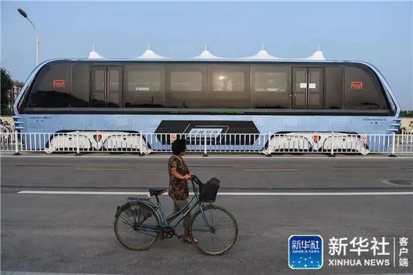 巴鐵1號試驗車在進行路面測試。 8月2日,我國自行設計研制、全面擁有自主知識產權的“空中巴士”——巴鐵1號試驗車,在河北秦皇島北戴河區開始啓動綜合試驗,包括剎車距離、摩擦系數、耗電等,檢驗車和路、人和車的關係。 上路後的回頭率自然是極高的 據巴鐵科技發展有限公司介紹,巴鐵1號試驗車為一節車廂,車長22米,寬7.8米,高4.8米,額定載客數為300人。車廂內有55個座位,乘客區設有20根竪立扶手,滿足高峰時段不同身高站立乘客的需求。 同時,車體配備多個液晶電視屏幕,方便各個角度的乘客觀看。此外,還安裝了4個動態地圖,便於乘客查看整個城市的交通狀況。 “巴鐵”適用於城市主幹道路面的上空,依靠電力驅動,採用大運量寬體高架電車設計,隆起的架構設計上層載客,下層鏤空部分可以正常行駛高度2米以下的車輛。 內部是這樣的
