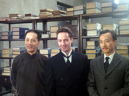 ● 《建黨偉業》劇照。左起陳獨秀、維金斯基、楊明齋。飾演維金斯基者Vitas是當今俄羅斯超高音歌星。楊明齋是中共一大重要角色,1938年在遠東被斯大林處決。(網上圖片)