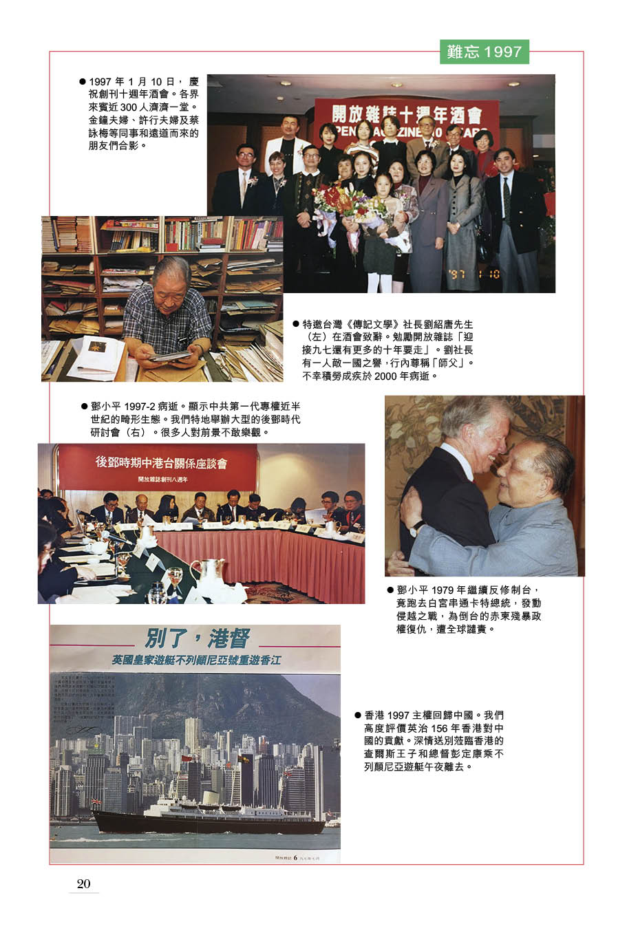 【編者按:今年7月在香港出版的開放雜誌《三十年備忘錄》,由普林斯頓大學余英時教授題寫書名。主編金鐘為『彩色故事:30年大事記』撰寫說明。現分上下集連載於開放網。這是上集。】