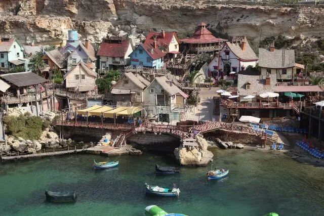 美麗的馬耳他還是全球導演心目中最佳的取景地之一,不論是現代背景,還是古代文明,從街頭電影到戰爭巨片和水下場景,馬耳他可以為任何形式的電影作品提供完美而獨特的背景。 下面隨便舉幾個電影的例子吧,大家看看這些場景,是不是似曾相識? 1、《大力水手》 1980年,為了拍攝電影版的《大力水手》,電影公司在馬耳他搭建了一座“大力水手”村,裡面的房屋五顏六色,實景重現了那個漫畫世界。