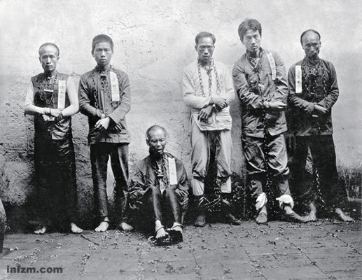 ● 黃花崗起義是孫中山領導的最後一次犧牲最大的起義,烈士不少是留學生,早期的海歸。臨刑前的烈士照片,右二是著名的林覺民。(互聯網)