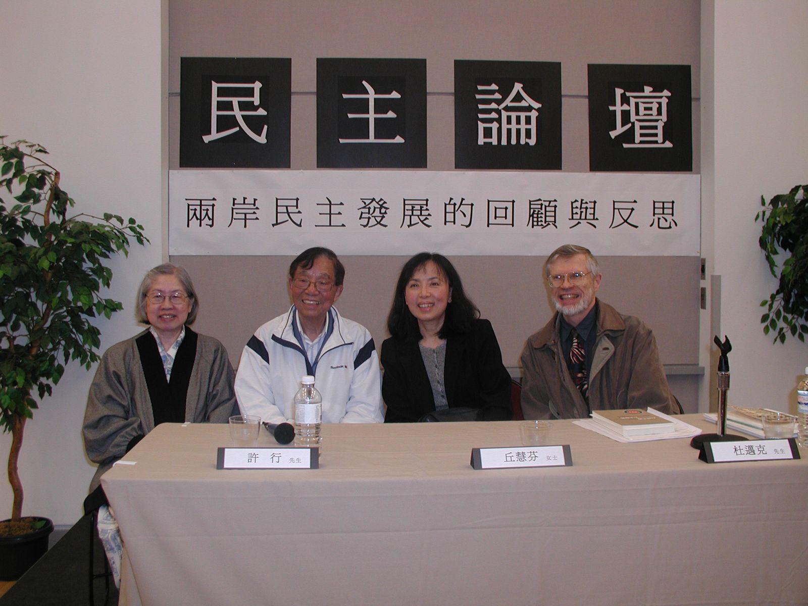 ●在加拿大的討論會上。左起﹕梁慕嫻、許行、邱慧芬、杜邁克。(本刊資料)