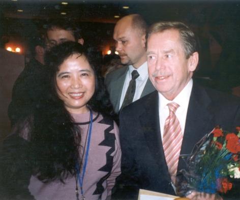 ● 作家茉莉旅歐多年,用心用功,體驗北歐文明,再傳授給她的中國讀者。她和捷克前總統哈維爾合影。(本刊資料)