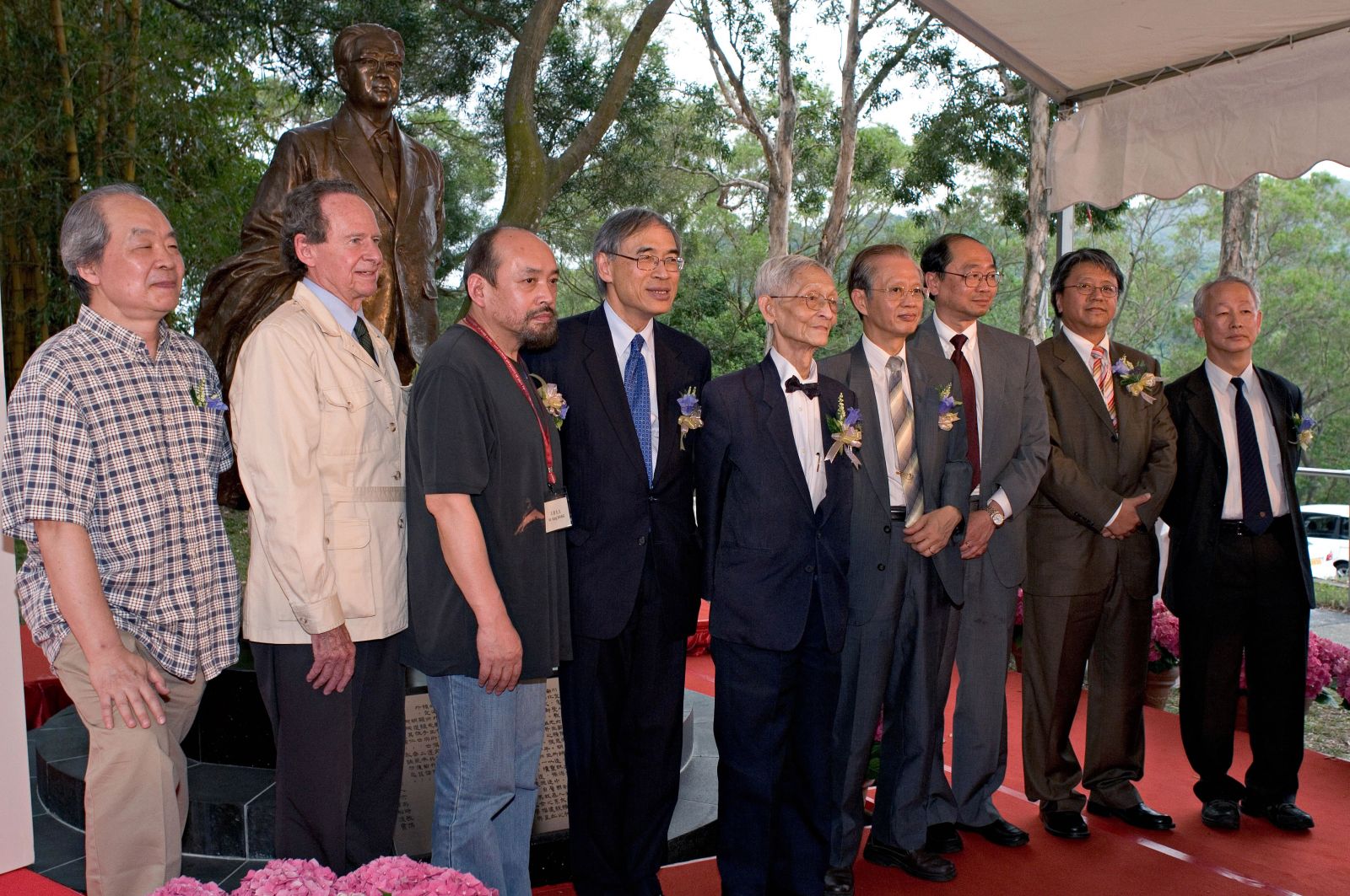 2009年5月王康(左三)來香港中文大學參加唐君毅銅像奠立儀式。王康是唐君毅的外甥。左四中大校長劉遵義,左五台灣中研院院士勞思光。