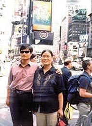 陳光誠夫婦2003年曾經被邀訪問美國一個月。這是當年照片。作者曾經訪問過他。那次訪問回國後,陳光誠被中共當局視為有國外背景的維穩對象。