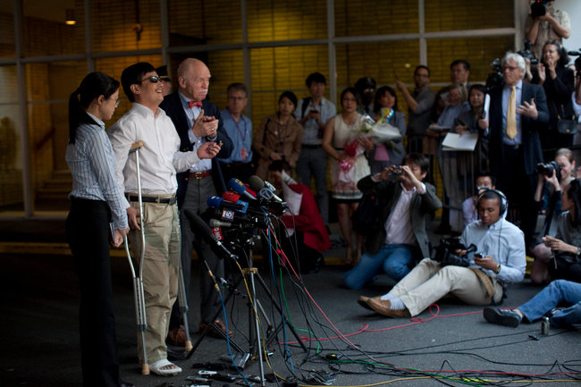 5 月19 日,陳光誠一家抵達紐約後,在紐約大學舉行記者會。