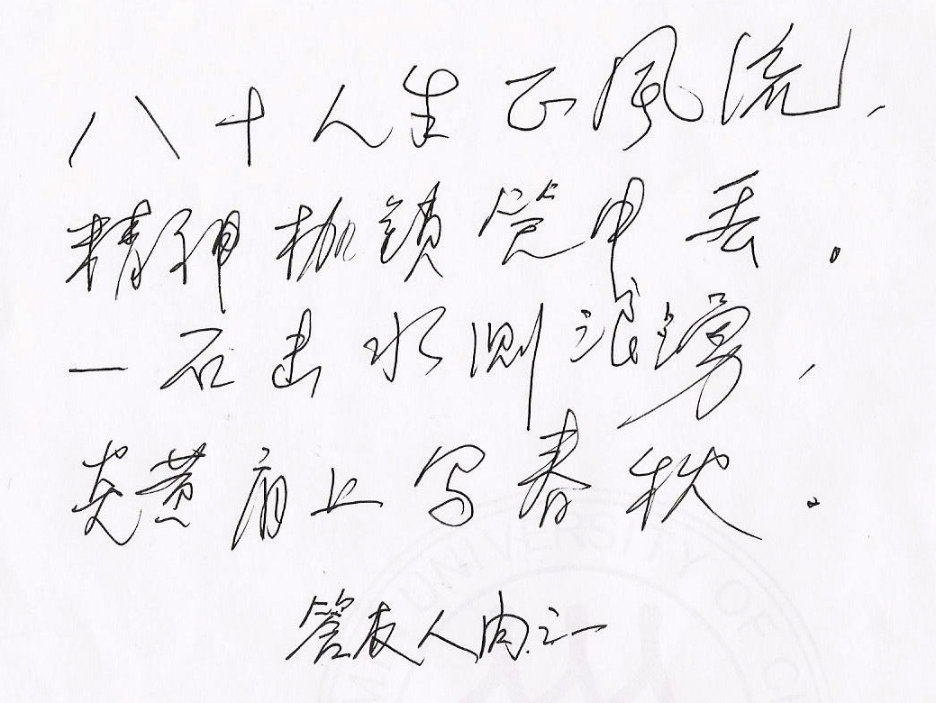 「八十人生正風流,精神枷鎖笑中丟, 他還勉勵香港市民要堅守自身的價值觀和原則,不要因為中共的施壓而退縮,香港各方面的成就已不斷潛移默化地影響中國大陸,也能為中國的體制改革產生推波助瀾的作用。