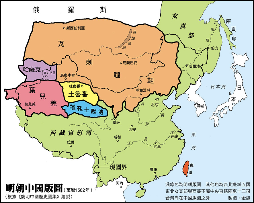 ● 圖二:明朝西北部大片領土,都不屬於中國。只有中原黃河長江中下游是漢民族的傳統聚居區。