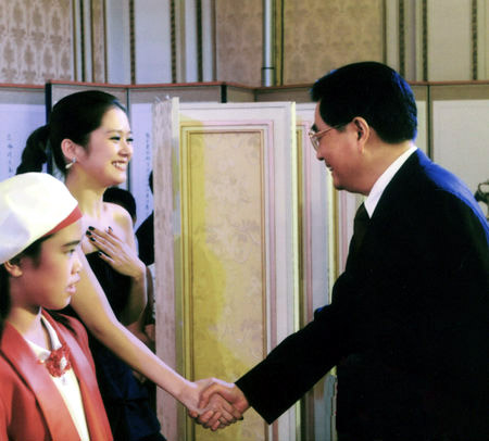 ● 8月25日胡錦濤在韓國青瓦台總統府晚宴上用韓語與韓歌星張娜拉寒暄。