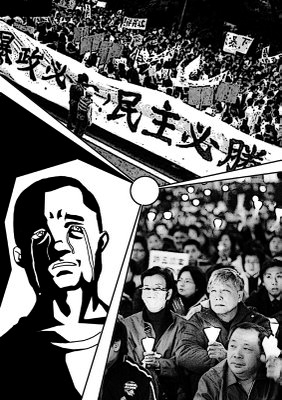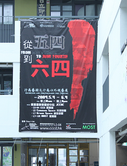 氣氛比十周年更熱烈 早在去年,海內外華人社會已開始著手籌備「六四」二十周年紀念活動,各方躍躍欲試,準備大幹一場。今年元月支聯會「我要回家運動」出版新書《回家》,三月支聯會主席司徒華副主席蔡耀昌巡訪北美,沿途演講、座談、會晤六四流亡者和民運人士。及後以王丹為首的「紀念六四事件委員會」於四月二十六日,即中共將學潮定性為暴亂的人民日報「四二六社論」發表二十周年,發表《民間六四白皮書》,揭開了紀念「六四」二十周年的序幕。 在香港,進入四月初,紀念活動已開始被媒體熱炒。四月十五日中共總書記胡耀邦逝世二十周年,香港蘋果日報罕有地以多個版面大幅報導,隨後以專輯形式每天一個版面連續報導,重現當年歷史。而《明報》也開始每週一個對開版面高調回顧六四。由於港大學生會長陳一諤企圖淡化六四被罷免,曾蔭權特首在立法會答問大會上談六四失言,以及趙紫陽的錄音回憶錄公佈,一個事件又一個事件,一波又一波的高潮,令全城爭說六四,將紀念六四事件的氣氛推向空前熾熱。不少媒體記者都說,記得六四十周年、十五周年氣氛都沒有這樣熱過,他們估計今年五月三十一日的六四紀念遊行及六月四日的「維園燭光追思會」的參與人數都會超過以往數年。 香港不少青年紀念六四 往年紀念六四,搞手主要是支聯會,社會各界是參與者。但今年一個顯著特點是,在支聯會外,有許多青少年和文化藝術工作者主動參與,他們以青年人的熱情、獨特的創意推出各種別出心裁的紀念活動,效果意想不到的好。這些青年大多活躍於網上,在著名社交網站Facebook就有多個「紀念六四的網絡群組」,發動青少年參加紀念。在香港網絡論壇高登討論區,一名二十二歲的網友阿泉以前從未參加過維園集會,這次看到香港電台節目的六四鏡頭忍不住落淚,遂設計了八款六四T恤在網上徵訂,因為設計新穎,網上認購熱烈,到五月中旬已賣出一千四百件,盈餘三萬一千元,一半捐支聯會,一半捐天安門母親。 在高登討論區出沒的青少年,主要談年輕人喜歡的話題,與政治無關,但隨著六四.二周年日子臨近,有關六四的討論也越來越熱烈,一些對六四所知不多的青少年反要到討論區找資料,瞭解真相。有位八九年出生的網友經高登討論區感染,決定發為六四靜坐絕食運動,五月二十九日開始,直到六四當日。另一位高登討論區青年網友King在網上發起籌款及徵求廣告設計,在蘋果日報刊登全版廣告。 四月中旬,香港、九龍、新界不少街頭出現印有六四的羅馬數字(VIIV)貼紙,引發社會很大好奇,原來是一群青年藝術家設計人用這種故弄玄虛的方式,為他們五月十一日推出的六四漫畫造勢。 二十年前在澳洲悉尼讀中學的Andrew,激憤於特首曾蔭權自稱代表港人忘記六四,作歌一首,「那夜發生的事......毋忘六四」,放到網上與朋友分享,歌詞動人,歌聲悠揚,一夜之間在網上廣為流傳,兩天就有兩千人點擊,許多人「感動得想哭」。 今年四月初,一群二十來歲的文藝青年組成「八○後六四文化祭」,以音樂會、讀書會、藝術展覽、街頭行為藝術等一系列方式紀念六四。他們說「在我們眼中,六四不只是一個等待平反的歷史事件,它更是一種可以承傳給下一代的態度......」五月二十三日在牛棚藝術村舉辦的「六四野餐讀書會」請了多位香港作家和人文學者分享後六四的閱讀經驗,和六四事件在個人知性、感性探索的道路上有何影響。然後挑選因六四而閱讀過的文本,與現場參加者閱讀討論。 他們還在牛棚藝術村從五月十六日到六月十四日舉辦一個月的《風雨飄搖愛國時──年青藝術家六四展》,展出近二十位青年人以六四為題材的藝術創作。 除此之外,香港各社團、政黨、大學生組織也各自有不同的紀念活動推出,如天安門母親運動的街頭音樂表演、話劇、詩歌朗誦、行為藝術等。一個叫「六四舞臺」的自願團體在六月五至七日於創意書院多媒體劇場演出六四二十周年紀念話劇《在廣場上放一朵小花》。