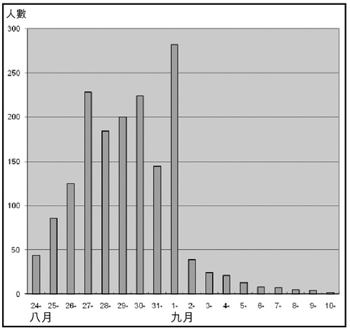 (表一)是那一時期北京每日被紅衛兵打死的人的數字。 從上圖可以看到:李文波死後第二天,八月廿六日,被打死人數從兩位數跳到了三位數,從不到一百人變為超過一百人。從八月廿五日到廿六日,被打死人數增加了百分之五十。從八月廿六日到八月廿七日,被打死人數又再次加倍。在九月一日,被打死人數達到了最高峰。八月三十一日,被打死人數低下來,是因為那一天毛接見百萬紅衛兵,大批紅衛兵停工一天,死人相對少了。 九月一日發生了北京殺戮的最高峰,一天內有二百二十八人被打死。那天以後數字驟降,原因也很清楚。九月二日中共北京市委發出文件,指出「要用最大努力耐心說服和堅決制止一切打死人的現象」。一個口氣並不嚴厲的書面指示,就立即發生效果。說明暴行是可以控制的,不是現在有人說暴行產生是因為「失控」當局無能為力。