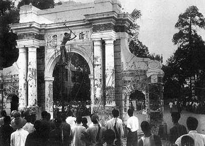 八月五日,紅衛兵開始打死人 八月五日中共中央發出三九五號文件,撤銷劉少奇的三一○號文件。影響巨大。無異於發出了暴力准許證。 同一天下午,北京師範大學女附中的紅衛兵在校園中(西單附近)打死了副校長卞仲耘。折磨毆打的過程持續數小時。卞仲耘是北京第一個被紅衛兵打死的教育工作者。和她一起被打的還有另外四名學校領導人。卞仲耘被打死之事立即被報告中共北京市委以及周恩來總理辦公室。但是上面沒有派人來制止紅衛兵打人。(二○○六年,南京的電影製作者胡杰把卞仲耘的故事製成紀錄片《我雖死去》。片中有她被打死時的血衣和打壞的手錶等實物,也有學校紅衛兵負責人宋彬彬等人處理屍體時寫下的字據。這紀錄片在香港獲獎並已經被翻譯成德文,但在中國不能公演。) 十二天以後,八月十七日,北京一○一中學美術教師陳葆昆在學校噴水池邊被打死。同時和他一起被打的,還有該校十多名教師。初三女生吳芳芳,被指控撕壞一張毛澤東像。她的父親是航空學院教授吳禮義,也算家庭出身不好。她遭到毒打,還和陳葆昆屍體關在一小屋裡。她從此精神失常,一直沒有康復,由父母照顧。(大型紀錄片《八九點鐘的太陽》製片人卡瑪當時是這個學校的學生。她的電影裡沒有報導這類紅衛兵暴行。影片中出現的北京五所中學的紅衛兵成員,都沒有為紅衛兵暴行表示道歉。那五所中學有九人被紅衛兵打死。) 中國歷史上,從來沒有過這樣大規模的由青少年打殺教師的事情。在皇帝時代,死刑要經過審理、上訴、專業執刑。把文革解釋為「封建主義傳統」造成,顥然不符合事實。 八月十八日毛接見紅衛兵暴力升級 八月十八日毛澤東在天安門廣場接見一百萬高呼萬歲的紅衛兵。紅衛兵領導人則登上天安門城樓,這些紅衛兵頭頭幾乎全是高幹子弟。八一八大會向全國實況廣播。在城樓上,北京大學紅衛兵彭小蒙代表紅衛兵講話。北師大女附中紅衛兵頭頭宋彬彬給毛澤東戴上紅衛兵袖章。毛問她的名字後,說「要武嘛」。這樣的接見以後還有七次。一千多萬紅衛兵得到免費火車票和食宿來到北京,被稱為「革命大串連」。 北大附中是北京最早開始暴力行為的學校之一。六六年八月,該校紅衛兵在校中打死三個人。而師大女中是北京第一個打死人的學校。彭小蒙和宋彬彬在八一八大會上得到的顯赫位置,其中包含的指令再清楚不過。八一八大會後,紅衛兵暴力在規模上和程度上全面升級。八一八大會前北京被紅衛兵打死的教師有二人。八一八大會後,紅衛兵竟打死了一千多人。 中共中央黨校校長林楓,在八一八大會後回到黨校就被抓去「遊街」、戴高帽子、手裡敲著簸箕自報「罪名」。中央黨校幹部說,這是中學紅衛兵引導了高層理論機關。 十九日,北京第四、第六、第八中學的紅衛兵在中山公園音樂堂「鬥爭」北京教育局和三所中學的領導幹部。在舞台上,教育局長被打斷三根肋骨。其他人被打得頭大如斗,面目全非,他們的血流在舞台上。從那時候起,劇場、體育館這些文化場所變成了召開暴力「鬥爭會」的野蠻血腥之地,延續多年。 八月十九日晚,位於北京和平門的外語學院附中,紅衛兵打死了兩名教師張輔仁和張福臻。北京第三女子中學紅衛兵從八月十九日開始連續毆打和折磨校長沙坪。八月二十日上午,沙坪和幾十名教員幹部跪在全校人面前被鬥和毆打。沙坪在中午時候死亡。副校長熊易華跪在沙坪旁邊,頭上壓了三塊磚頭,額頭打破,流了一地血。數學教員張梅岩上吊身亡。一位教師目擊者說,她後來還看到打死沙坪的紅衛兵(都是中學女生)在西城區委大院裡揮動銅頭軍用皮帶打人。 北京宣武區梁家園小學校長王慶萍,在八月十九日被鬥和毒打後被關在學校。她在二十日早晨墜樓身亡。被宣佈是「自殺」,雖然沒有遺書。她有三個孩子,當時八歲九歲十一歲。她的大兒子說:媽媽一定是被推下樓去或者是被打死了扔下去的。 清華大學校長、高教部長蔣南翔在西單家中遭打二龍路中學紅衛兵毒打。目擊者說,紅衛兵命令他跪在地上,用銅頭皮帶抽他的後背。打了一陣,掀起他的襯衫說背上的條狀傷痕分佈不對稱,接著又抽打傷痕較少的半邊。 八一八大會後紅衛兵暴力從校內擴展到校外。八月廿三日,北京市文聯的廿八名作家、演員和領導幹部在文廟(現在是博物館)遭到紅衛兵毒打,其中有著名作家老舍先生。他在第二天投湖身亡。八月廿四日,紅衛兵到北京東廠胡同六號居民左慶明家抄家並毒打他年已七十的妻子。租住他家房子的馬大娘是個家庭服務鐘點工,到胡同口給左慶明報信叫他不要回家。紅衛兵發現後把馬大娘和左奶奶一起綁在葡萄架子上毒打。紅衛兵還用開水澆燙她們,他們的哀嚎傳到四鄰。那天晚上東廠胡同至少有六個居民被打死。死者中還有一人是北京有名的技術精良的眼鏡師孫琢良。他曾經開過一個眼鏡店,並有自己的住房。 八月廿二日《人民日報》頭版報導紅衛兵「破四舊」(舊思想舊文化舊風俗舊習慣)行動,特別介紹北京第二中學紅衛兵的「宣戰書」。紅衛兵開始到處燒書,燒畫,破壞文物,以及開始大規模的抄家行動。紅衛兵還強迫市民交出他們存有的所有黃金和白銀。 八月廿四日,清華附中紅衛兵召集北京十二所中學的紅衛兵到清華大學「造反」。他們在清華大學裡打人,抄家。此前暴力主