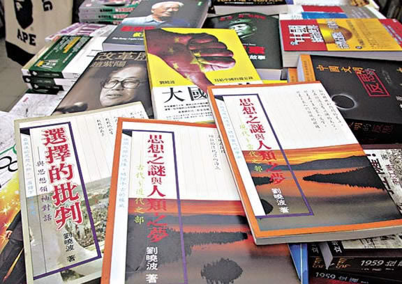 北京異議作家劉曉波獲諾貝爾獎消息宣佈後,全世界都想通過閱讀劉曉波來認識這位新出爐的諾貝爾獎得主。劉曉波多年來在港台出版的著作立刻成為搶手貨,他的朋友和出版商亦紛紛出版劉曉波文集,甚至趕寫他的傳記。劉曉波著作各種外文版本也在歐美趕著翻譯將陸續出版。 香港媒體報導,在劉曉波獲諾獎消息宣布後,不少讀者即趕往書店要買劉曉波的書和開放出版社出版的《零八憲章》。大型的三聯書店及小型的二樓書店等反映,劉曉波著作原來的存貨已銷完,亦有不少熟客來電預訂。許多書店亦反應敏銳,立刻將劉曉波著作擺上了當眼位置,有書店還在劉曉波著作封面上貼上了諾貝爾和平獎得主的貼紙。 劉曉波六四前在大陸的著作 香港出售的劉曉波書籍主要是他六四後在港台出版的著作。在八十年代中期崛起於中國文壇的青年美學家劉曉波,已開始著書立說,在一兩年時間內大陸出版過四部文化批判著作:《選擇的批判──與李澤厚對話》(上海人民出版社,一九八九台灣風雲出版社再次出版),《審美與人的自由》(這是劉曉波的博士論文,一九八八年北京師範大學出版社出版,六四後香港曙光出版社予以再版),《形而上學的迷霧》(上海人民出版社),《赤身裸體,走向上帝》(時代文藝出版社)。《赤身裸體》出版在一九八九年六四前夕,剛出版就成為禁書。